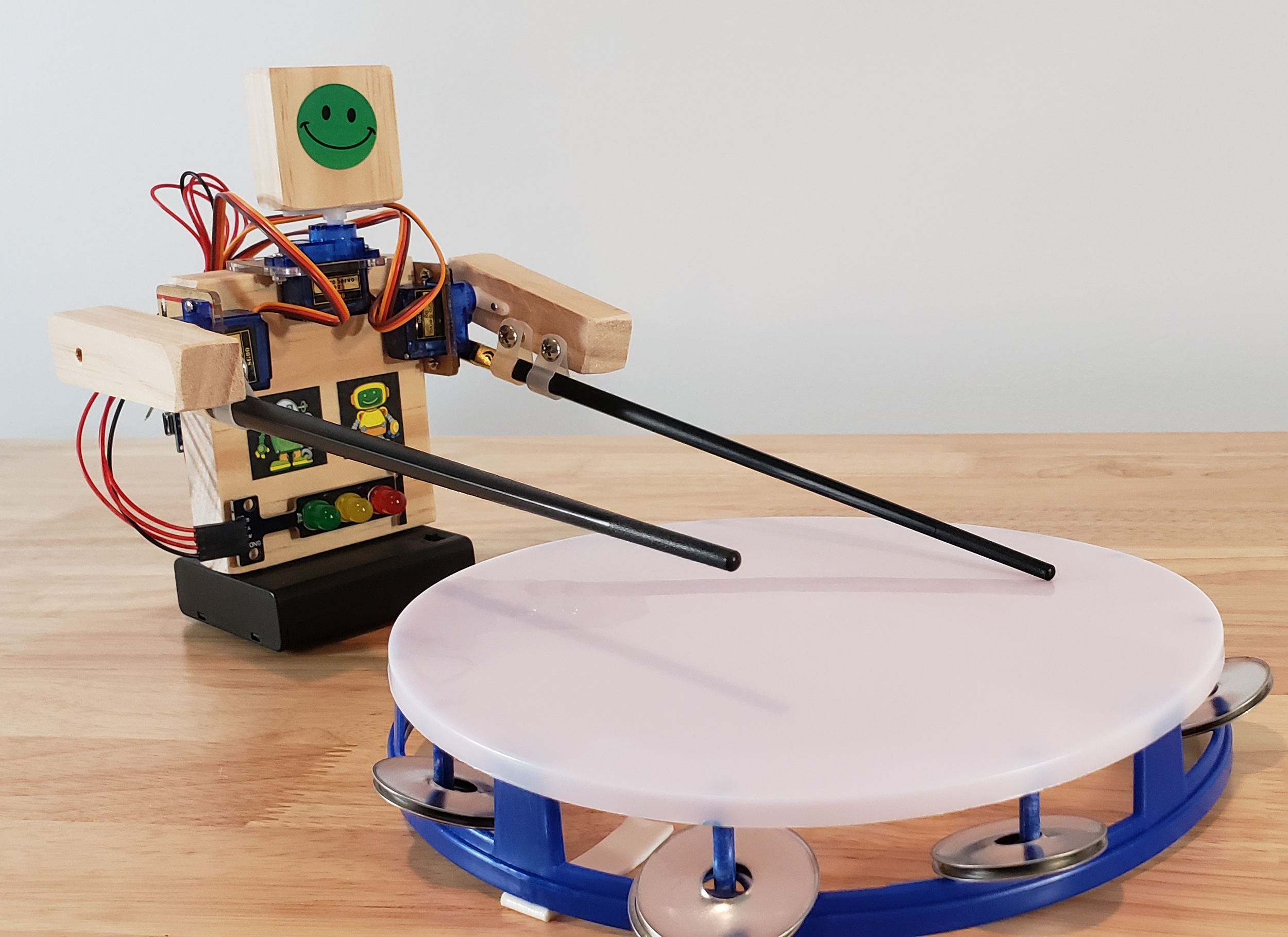 Meet Robby the Drummer, the interactive robot that really plays the drums! With step-by-step video lessons, kids will learn to control three motors — two for the arms and one for the head — mastering speed, timing, and movement to create custom beats.