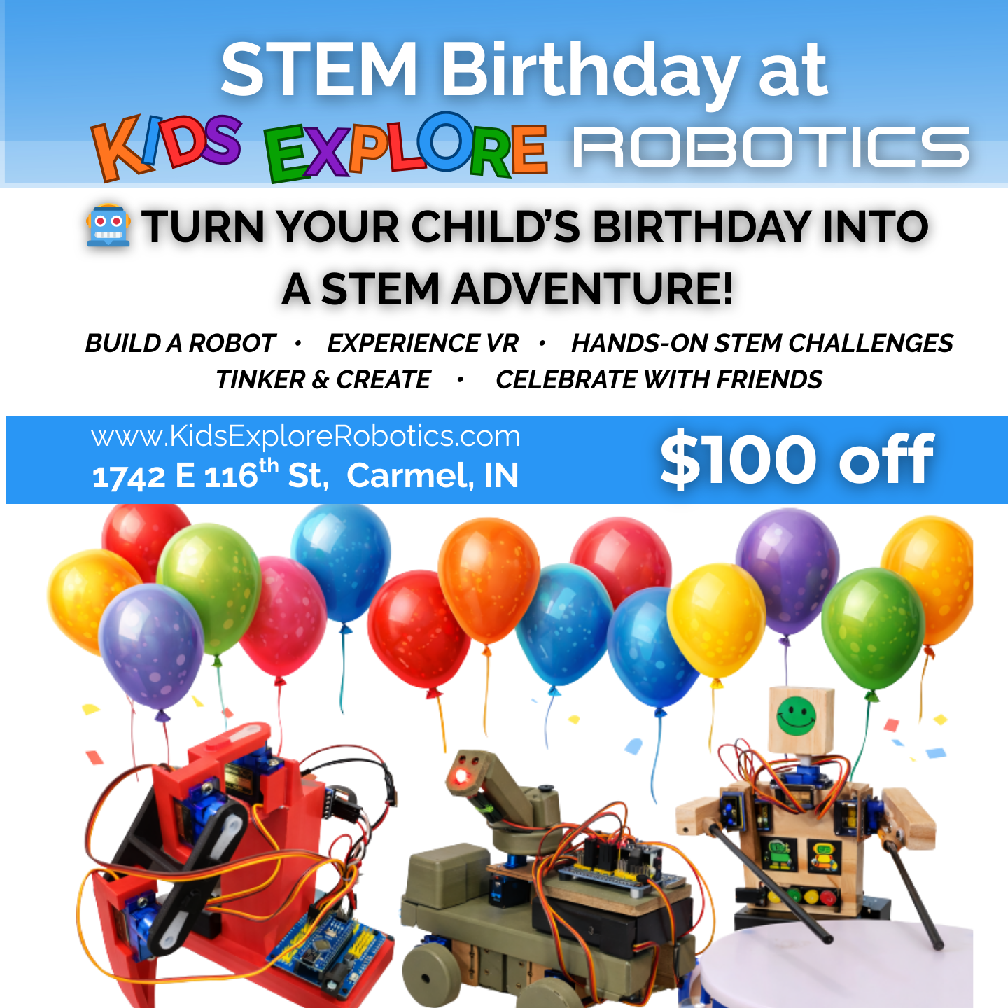 Give your child a birthday celebration that’s fun, hands-on, and unforgettable. At Kids Explore Robotics STEM Center, kids don’t just celebrate — they build, explore, create, and discover with their friends.